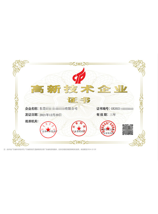 高新技术企业证书