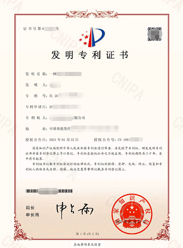 发明专利证书