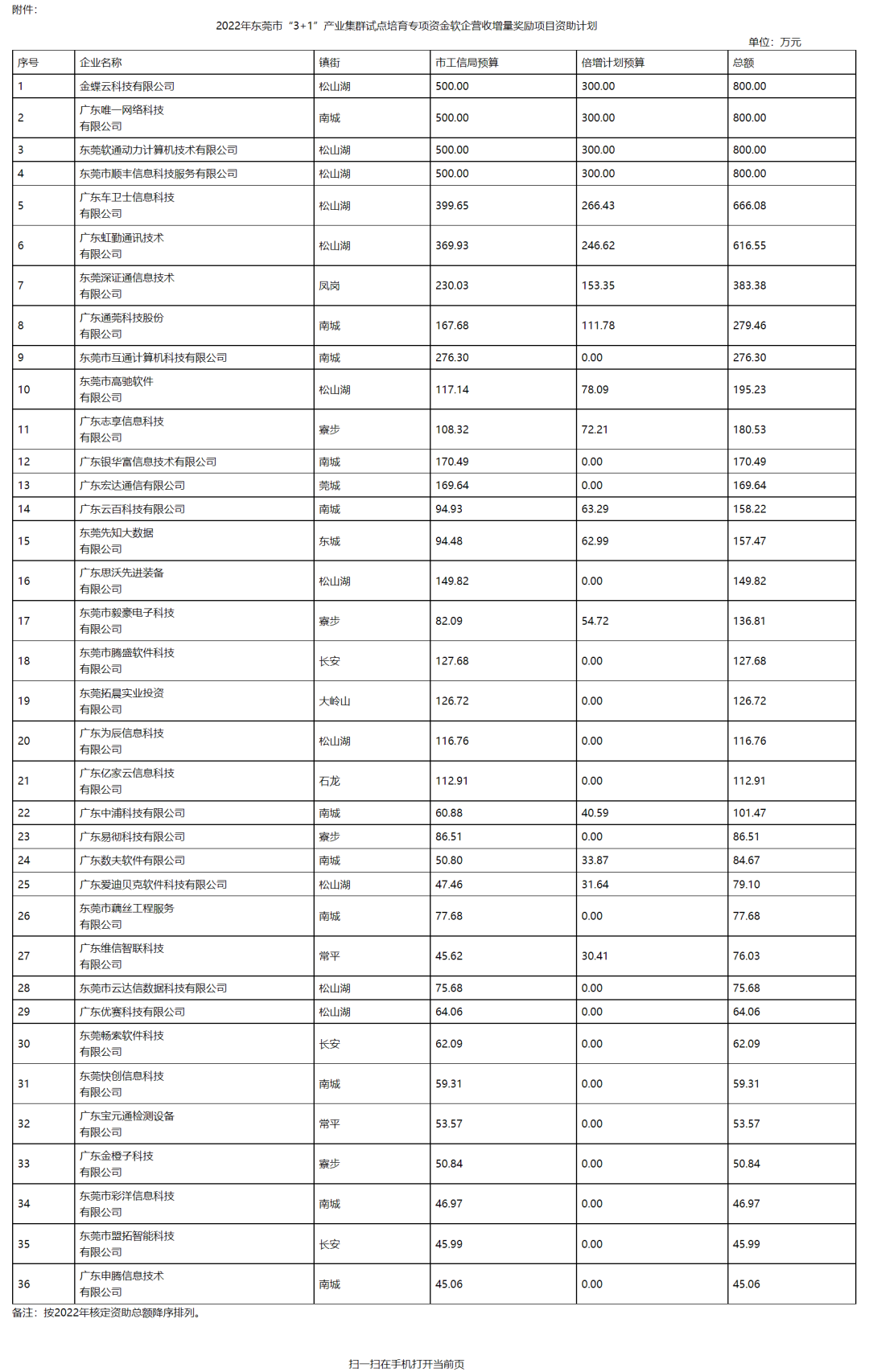 根据《东莞市“3+1”产业集群试点培育专项资金管理办法》《关于组织申报2022年东莞市“3+1”产业集群试点培育专项资金软企营收增量奖励项目的通知》《2022年“倍增计划”专项资金资助目录》工作要求,我局组织开展了2022年东莞市“3+1”产业集群试点培育专项资金软企营收增量奖励项目有关工作。经组织申报、形式审查、项目审核、征求意见等流程,形成《2022年东莞市“3+1”产业集群试点培育专项资金软企营收增量奖励项目资助计划》,现予以公示。