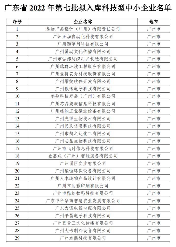 广东省2022年第七批3635家拟入库科技型中小企业名单(附件)