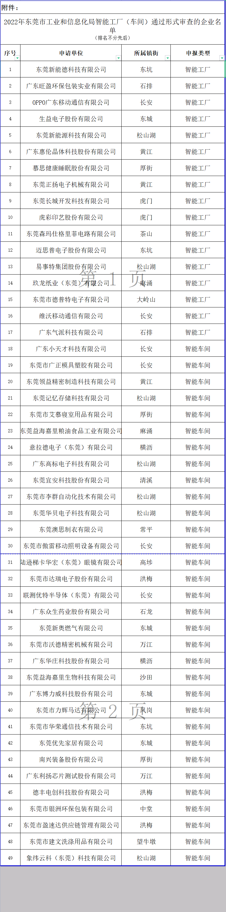 附件:2022 年东莞市工业和信息化局智能工厂(车间)通过形式审查的企业名单