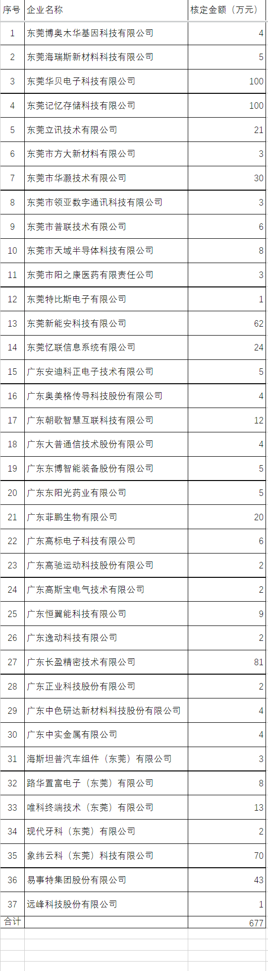 根据《关于进一步支持疫情防控帮扶市场主体纾困发展的通知》工作要求,我局受理一批规上工业企业稳产扩产项目。经审核,松山湖管委会拟东莞博奥木华基因科技有限公司等37家期给予资助,现将名单予以公示。