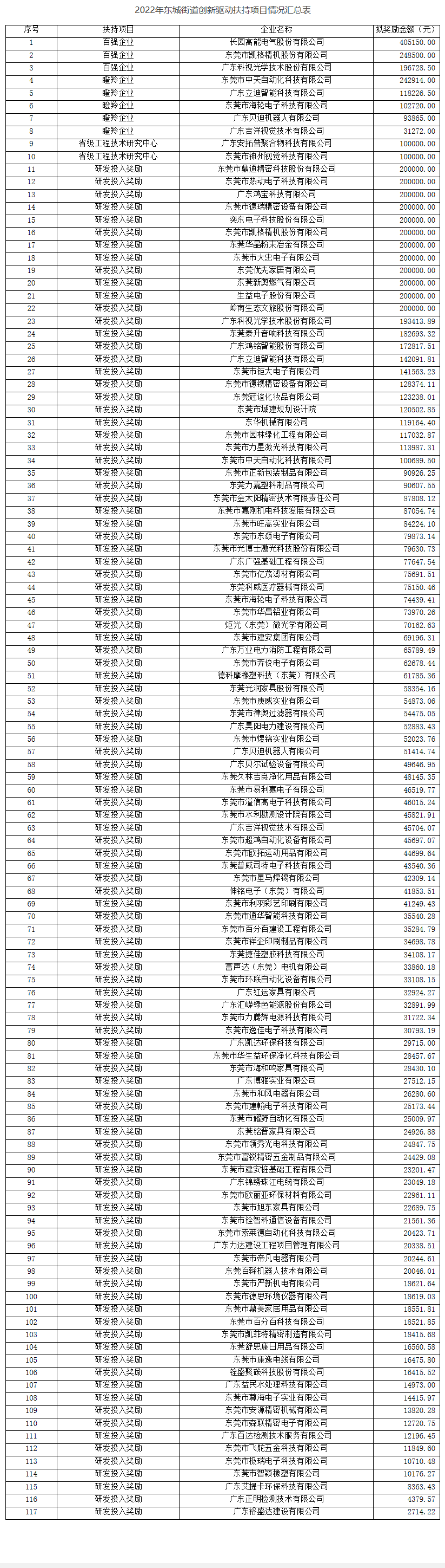 根据《《东城街道创新驱动发展专项资金管理办法(试行)》(东城府〔2020〕32号)的有关规定,我办于2022年组织受理并审核了2021年东城街道创新驱动扶持奖励项目,现将拟资助名单向社会公示。