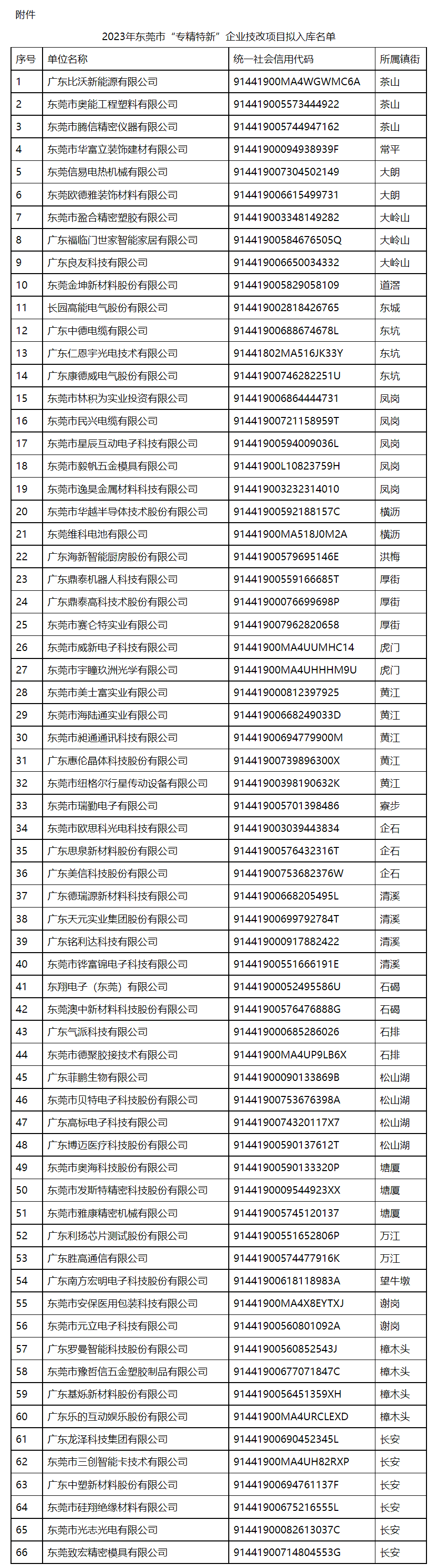 根据《东莞市加快培育发展“专精特新”企业的若干措施》(东工信〔2022〕154号)要求,我局组织开展了2023年东莞市“专精特新”企业技改项目入库申报工作。经企业申报、项目形式审查、现场审核等流程,形成《2023年东莞市“专精特新”企业技改项目拟入库名单》,现予以公示。