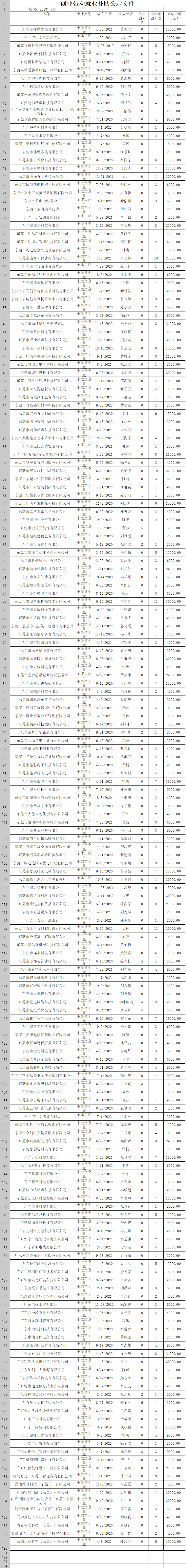现将2023年6月审核通过的创业带动就业补贴申领情况进行公示 (内容详见附件),如公示名单中存在被证实不符合拨付条件的,将予以剔除,实际补贴发放情况以最终拨付名单为准。