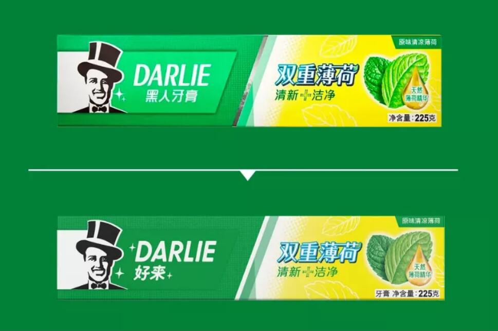 事实上,黑人牙膏自被高露洁收购后,就收到了来自欧美客户大量的投诉,还一度被列入禁止出口名单。黑人牙膏的英文名也从“Darkie”(黑人)改为了“Darlie”(达利),并对黑脸绅士漫画形象进行优化处理,以更为年轻、阳光形象呈现,这一风波才算平息下来。