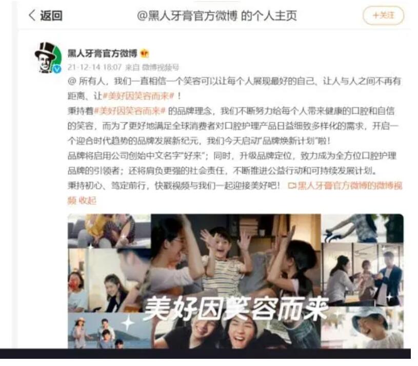 前些天黑人牙膏宣布:从2022年三月份起“黑人牙膏”将更名为“DARLIE好来”,新logo则是保留了原本标志性的头戴礼帽黑白绅士的卡通形象。