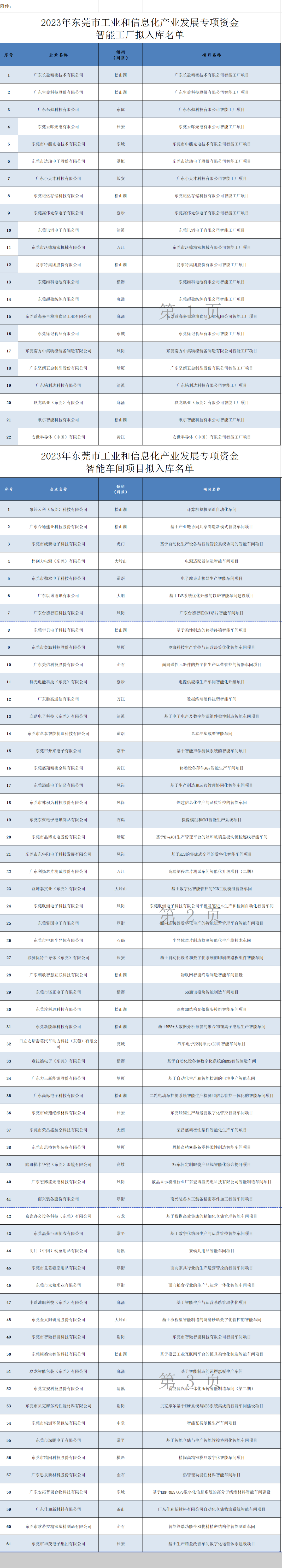 关于2023年东莞市工业和信息化产业发展专项资金智能工厂(车间)项目入库计划的公示
