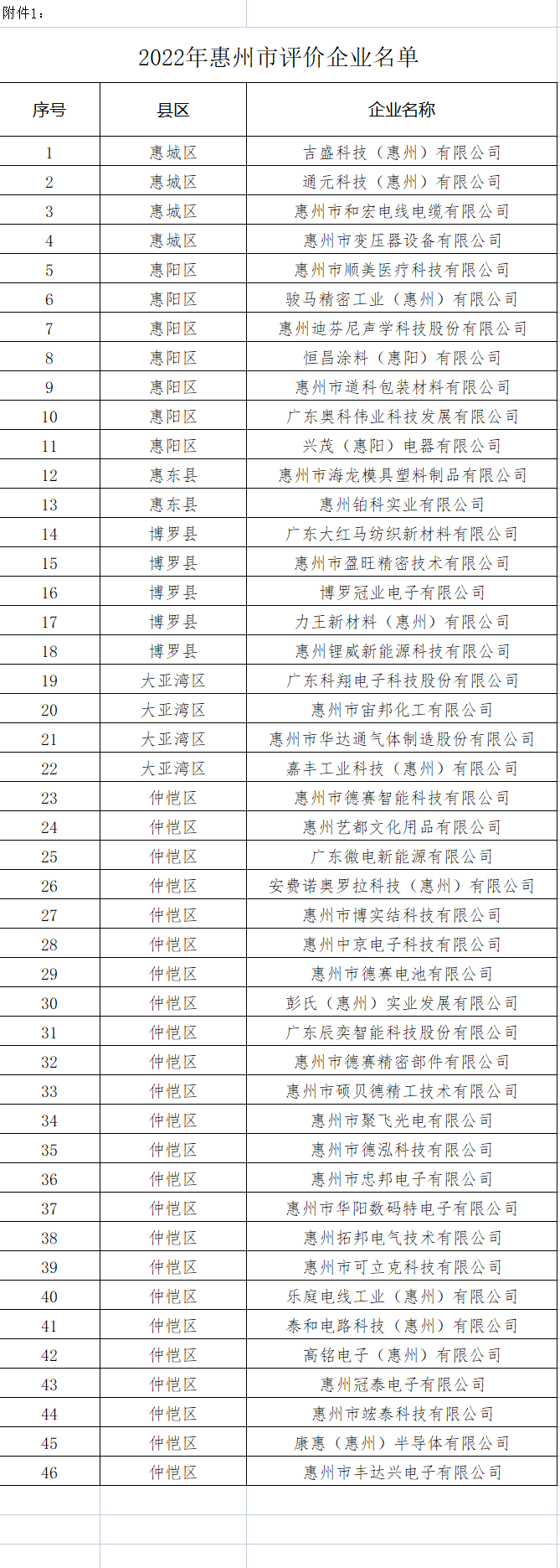 获评为第五批和第六批惠州市企业技术中心企业(名单详见附件1)。