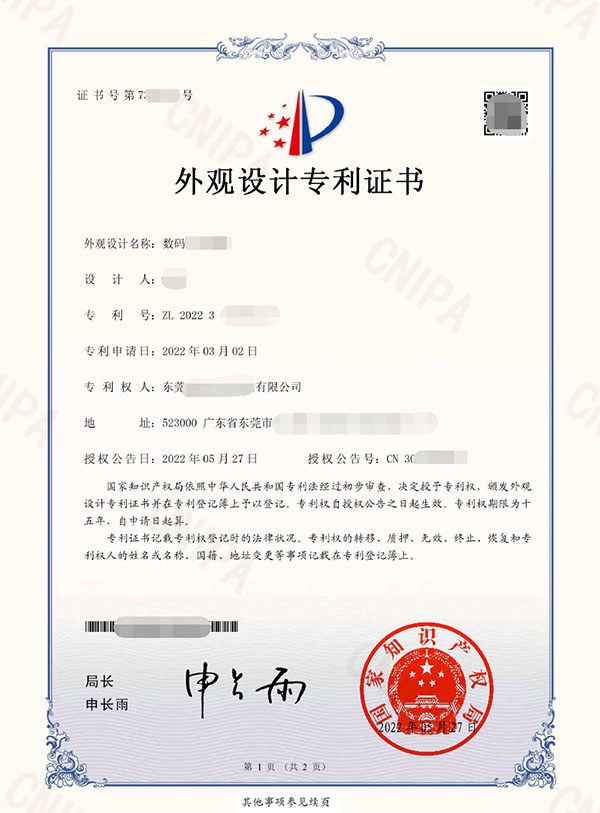 外观设计专利证书
