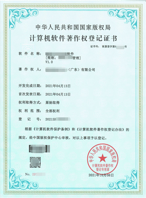 计算机软件著作权登记证书