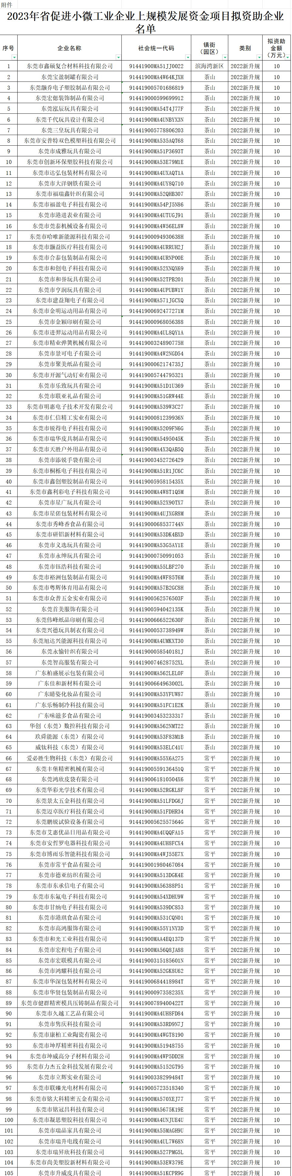 广东省 |关于2023 年省促进小微工业企业上规模发展资金项目拟资助企业名单的公示